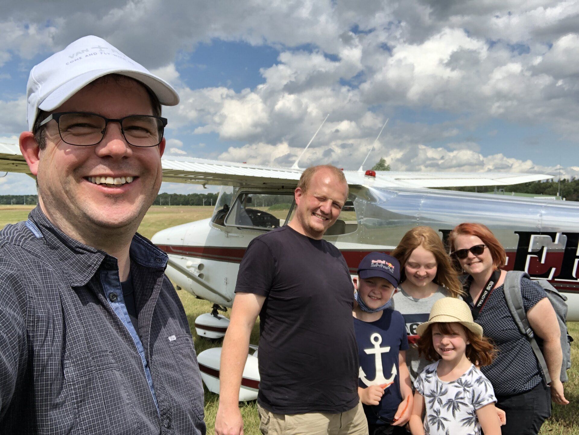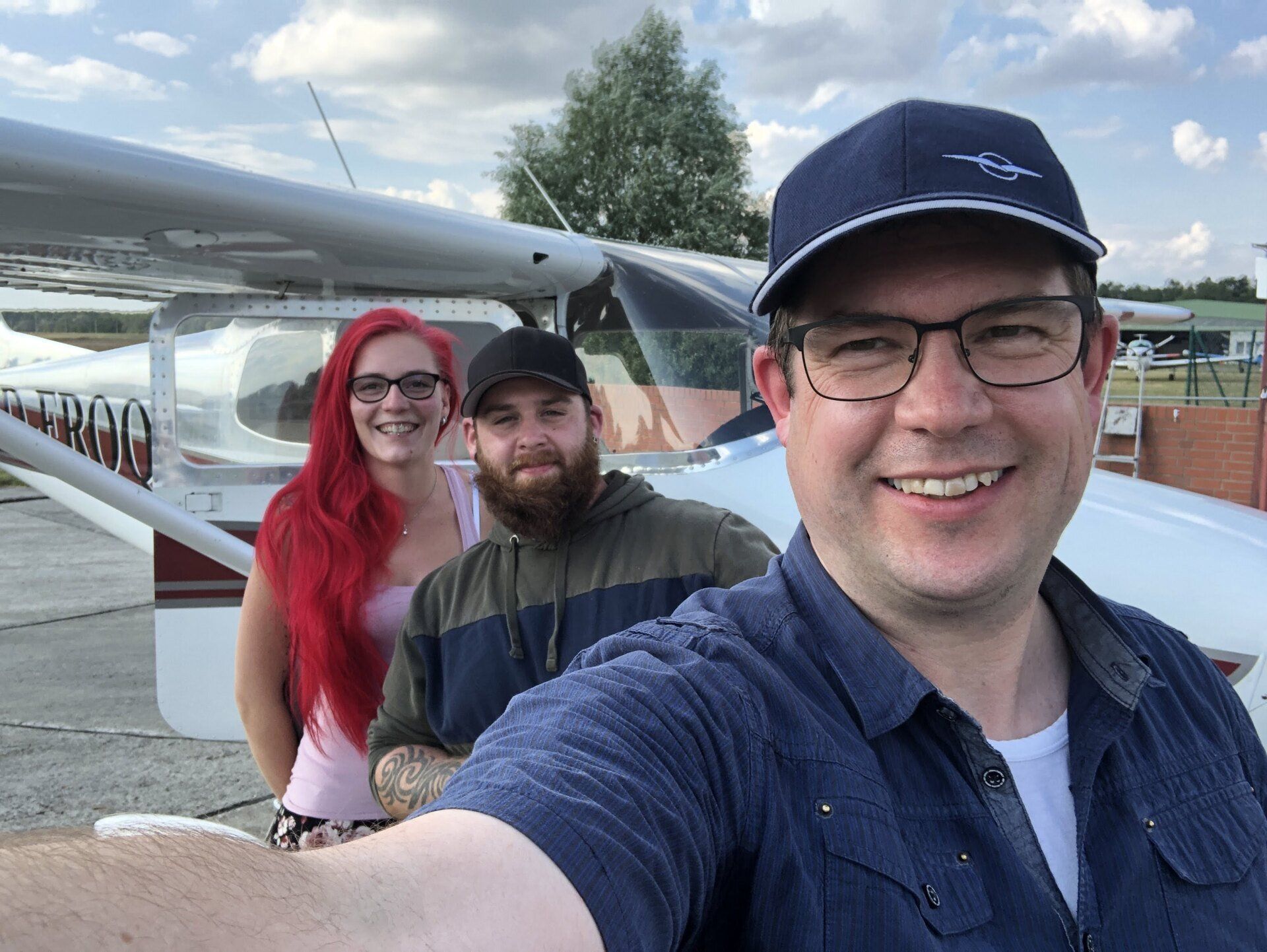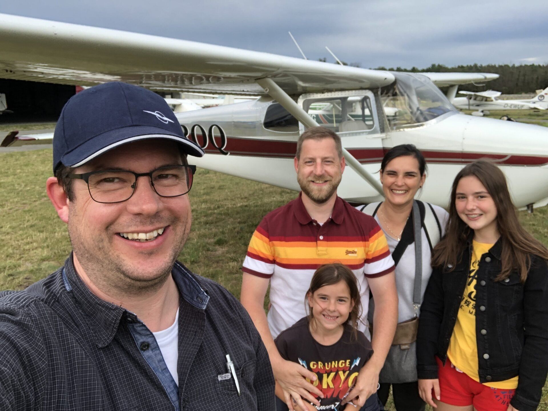 ButtonJens kam extra aus Bielefeld mit der ganzen Familie zur Farm. Da alle fliegen wollten mussten wir die Gruppe aufteilen und haben Zwei Runden gedreht.