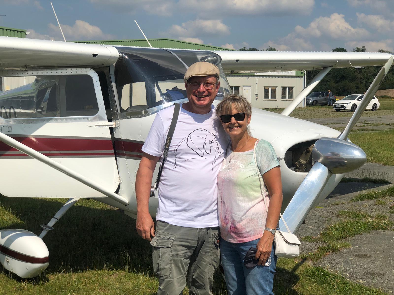 ButtonDie Überraschung war perfekt! Wir haben den Flug in der "alten" Cessna 172 außerordentlich genossen, wir sind total begeistert und werden wohl Wiederholungstäter werden, vielleicht an die Ostsee?!?!?! Du bist ein sehr sympathischer und äußerst souveräner Pilot, wir werden Dich sehr gerne weiterempfehlen! Herzliche Grüße von Evelin und Walter